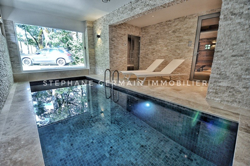 En rez de chaussée: une entrée avec grands placards, un ski room, une piscine, un hammam, toilettes,une douche, un sauna, une chambre-dortoir ( 6 couchages -enfants) avec sa salle de bains et toilettes, une buanderie, un local technique, une chaufferie, un espace de rangements, une cave à vins.